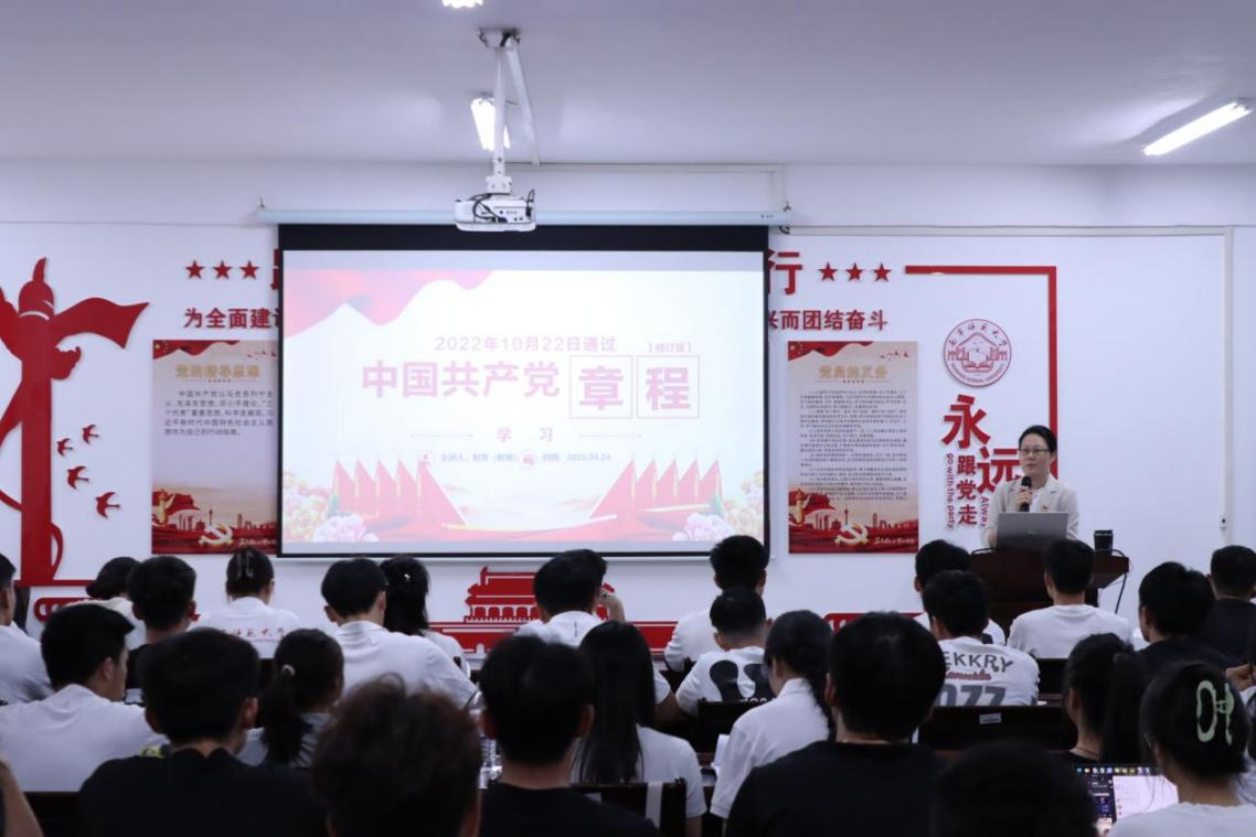 为深入学习贯彻习近平新时代中国特色社会主义思想,进一步提升预备党员的政治素养,加强党性修养,体育与健康学院于4月24日在武鸣校区1号实验楼B314室组织开展2025年上半年预备党员培训班第三讲:《中国共产党章程》(以下简称“党章”)。本次党课由学院赵芳院长主讲,学院2024年下半年、2025年上半年新发展预备党员参加。